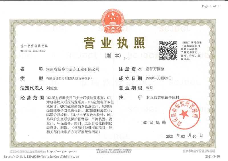 河南省新鄉(xiāng)市啟東工業(yè)有限公司始建于1987年,是專注研發(fā)、生產(chǎn)自動化儀器儀表(主要與壓力容器、鍋爐等容器配套使用)的廠家。主要產(chǎn)品有液位計(磁敏雙色型、磁翻柱型等)系列、烤包器熄火聯(lián)控裝置系列、壓力容器快開門安全聯(lián)鎖保護(hù)裝置系列、鍋爐報警器系列。二十多年來,公司產(chǎn)品暢銷國內(nèi)并遠(yuǎn)銷俄羅斯、蒙古與東南亞,深得廣大用戶的信賴和好評。我們多年來致力于自動化儀器儀表的研制生產(chǎn),公司現(xiàn)具有完善的生產(chǎn)、試驗、檢測手段和設(shè)備。科技創(chuàng)新、誠信服務(wù),是我們不變的經(jīng)營理念,我們將以強有力的技術(shù)支持及售后竭誠為客戶提供良好的服務(wù)。  2012年我公司成功研發(fā)了KCL系列烤包器熄火聯(lián)控裝置,并于2013年2月2日榮獲中華人民共和國國家知識產(chǎn)權(quán)局辦法的《實用新型**證書》<**號:2021202257735>該產(chǎn)品廣泛應(yīng)用于唐鋼等大型鋼鐵企業(yè),為烤包器安全作業(yè)提供了有力的保障。  2002年我公司成功研發(fā)磁敏電子雙色液位計獨特的高亮度LED紅綠雙色顯示,獲得了專家的首肯和用戶的一致好評。在此基礎(chǔ)上我公司研發(fā)人員十年磨一劍,致力于XQFB-1防爆型磁敏雙色液位計的研發(fā),于2013年12月27日由國家防爆電器產(chǎn)品質(zhì)量監(jiān)督檢驗中心檢驗合格并頒發(fā)防爆合格證書<編號:cnex19.0883>。該產(chǎn)品性能得到了充分的發(fā)揮,廣泛應(yīng)用于含有Ⅱ類A·B級T1-T4組可燃?xì)怏w或蒸汽與空氣混合形成的爆炸性混合物的0區(qū)、1區(qū)危險場所。連接用戶DCS或PLC系統(tǒng)實現(xiàn)遠(yuǎn)距離集中顯示和控制,從而實現(xiàn)節(jié)能、數(shù)字化管理。為用戶增加了一定的經(jīng)濟(jì)效益和社會效益,。2014年公司成功申請了夢潤儀表的logo,新的品牌新的形象,夢潤儀表是啟東的LOGO, 歡迎新老用戶前來洽談合作。  我們一如既往地注重科研的投入,憑借產(chǎn)品的不斷更新、加大科技含量,進(jìn)一步拓展市場。我們相信品質(zhì)成就未來,以過硬質(zhì)量、優(yōu)惠價格、完善的售后服務(wù)熱忱歡迎廣大客戶來我司視察指導(dǎo)、洽談業(yè)務(wù);精誠合作,共創(chuàng)輝煌!